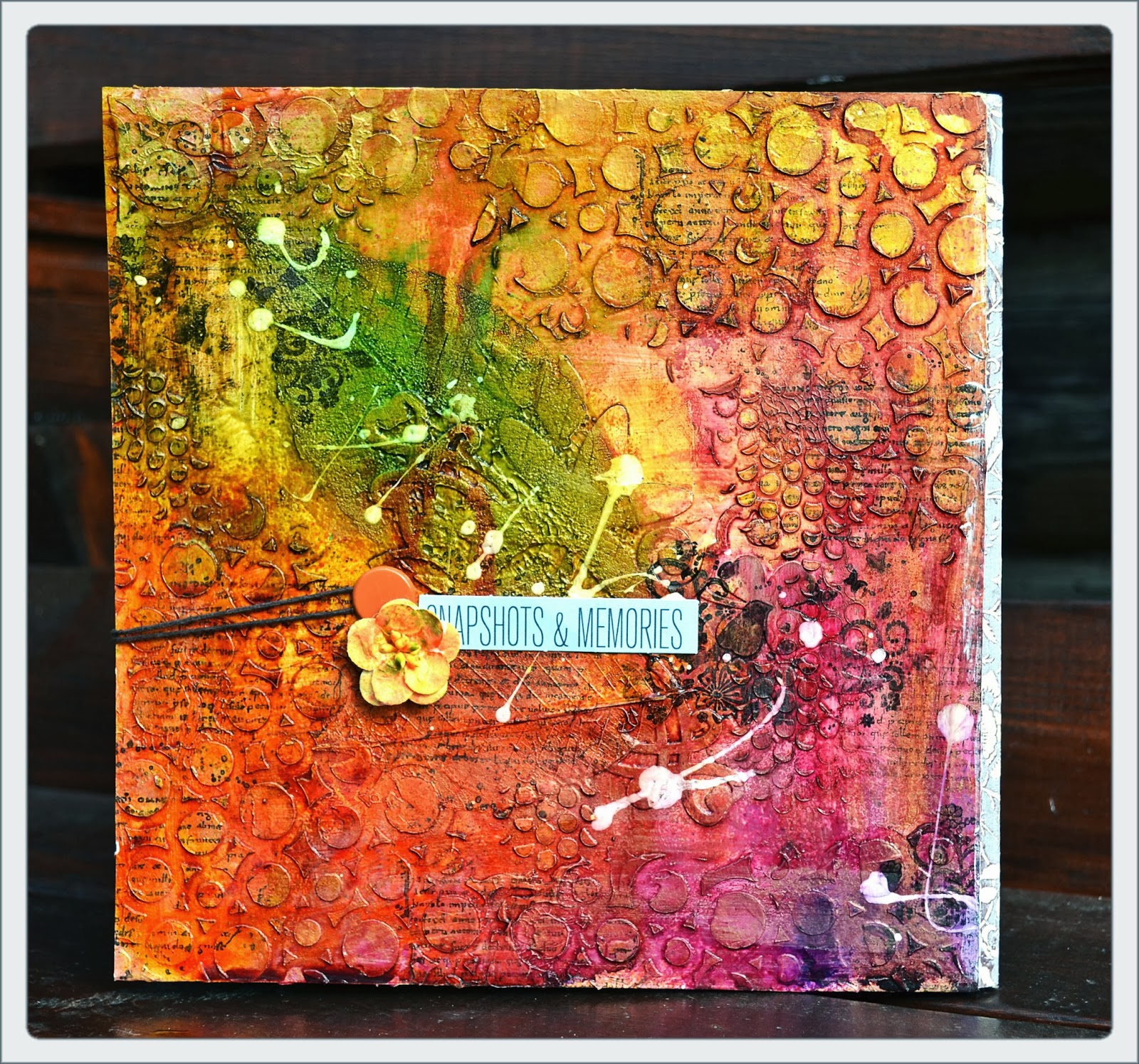 Я сегодня с обложкой для небольшого альбома всего из 4 страничек. Здесь все что я люблю, маски, паста, штампы, много спреев